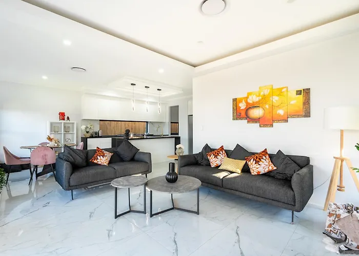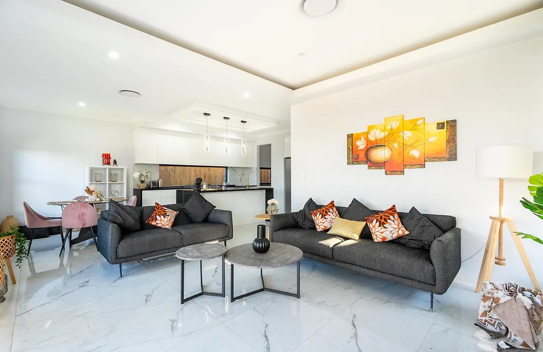 Modern, Luxurious & Brand New Home 4 Bedroom Home In Sydney features an equipped kitchen fitted with an electric kettle, a fridge, and kitchenware. Guests have access to café Gloria Jeans Flight Centre Sydney, situated fairly close to the Campbelltown accommodation.